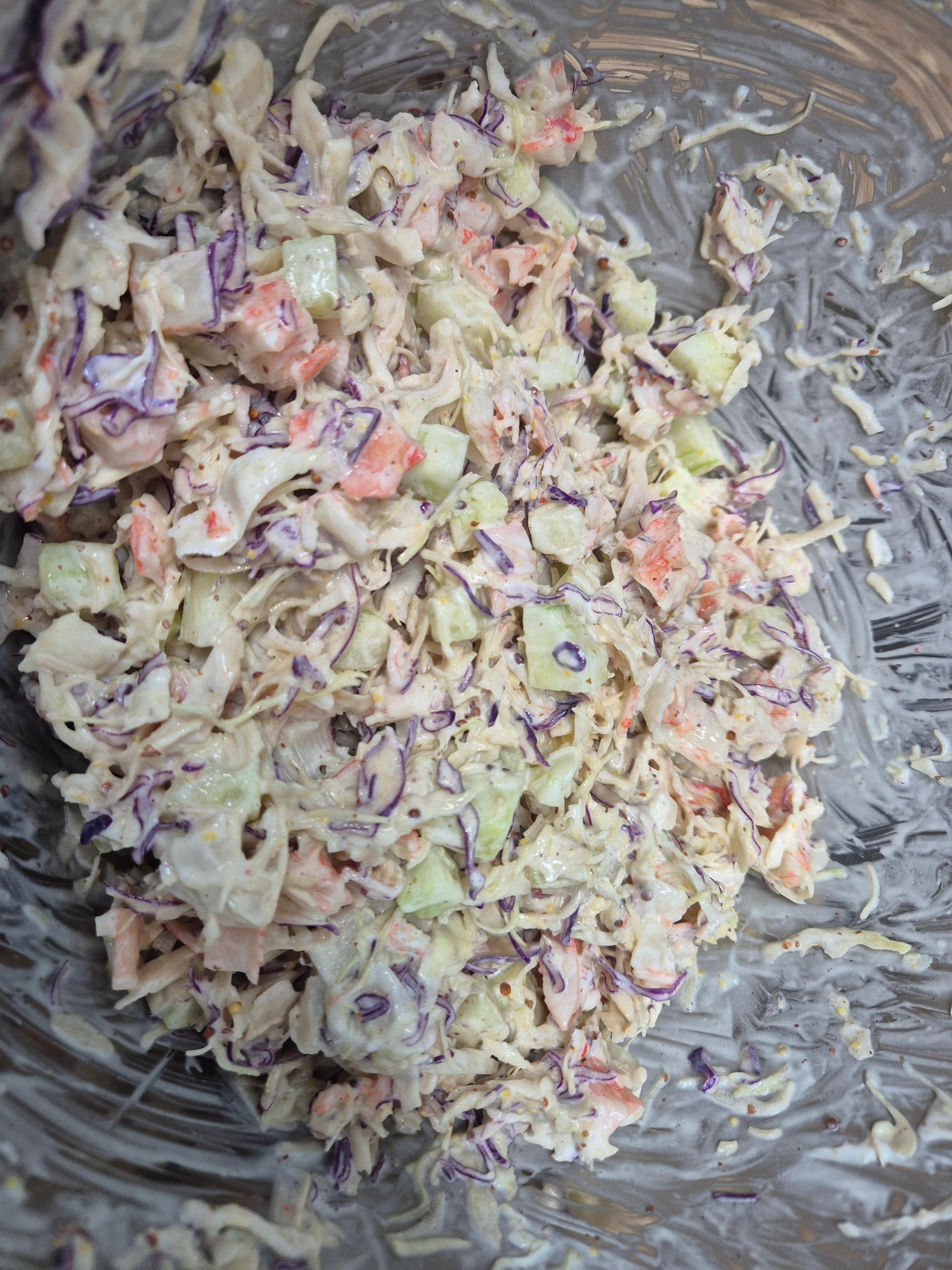 마요네즈 대신 그릭요거트, 다진 마음 대신 채썬 양배추.